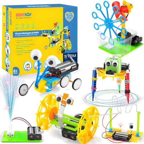 As crianças terão orgulho de montar seu próprio robô. Requisitos (não incluídos): solução de bolhas, 1.5V AA pilhas. Tempo de união familiar: Fazer experimentos científicos juntos é uma ótima maneira de pais e filhos construírem boas relações. Incentive seus filhos a construírem seus próprios robôs e a se divertirem com atividades científicas do tipo “faça você mesmo”. Ao brincar com esses robôs motorizados, a curiosidade e o interesse das crianças pela física serão despertados, e elas verão como é divertido fazer seus próprios circuitos.
